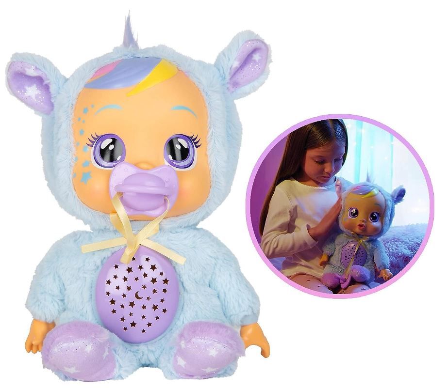 Cijena po jedinici ZaOtkrijte našu lutku Cry Baby Goodnight Starry Sky Jenna, savršenog pratioca u rutini spavanja vašeg djeteta. Ova preslatka interaktivna lutka osmišljena je kako bi pomogla umiriti djecu prije spavanja. Njezino mekano tijelo i super mekana pidžama savršeni su za grljenje.