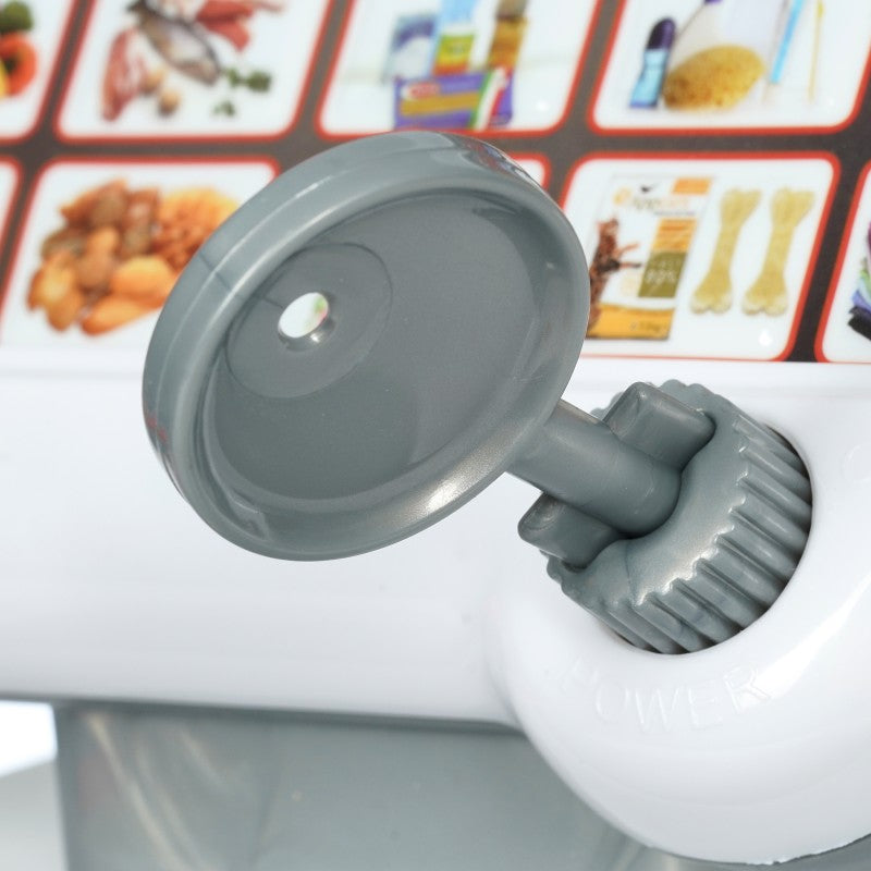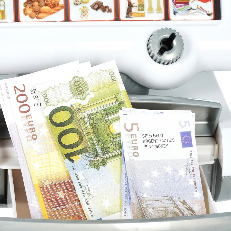 Elektronička blagajna dobila je nagradu 'Spiel Gut' od Radnog odbora za dječje igre i igračke. Ima sve što je djeci potrebno za stvaranje igrica koje su što bliže stvarnim situacijama na blagajni: vaga s ekranom, svjetlom, zvukom i ravnom površinom za vaganje, plastična tipkovnica s funkcijom izračuna koja proizvodi odgovarajuće zvukove kada unosi se iznos i skener koji svijetli i daje zvučni signal kada pritisnete tipku. Kupci čak imaju mogućnost plaćanja gotovinom ili kreditnom karticom. Sitnog novca također ima na pretek, a i blagajna daje odgovarajući zvuk kada kupci plaćaju karticom. Kako bi igrica bila savršena za vaše male trgovce, blagajna se može uključiti i isključiti ključem i ispušta nevjerojatno autentičan zvuk kada otvorite ladicu. Sve što vam je potrebno za stvarno izvrsnu igru.