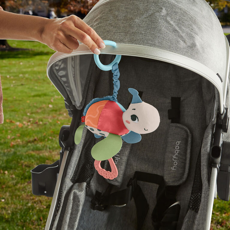 Cijena po jedinici ZaNadahnuta životinjama koje je istaknuo Svjetski fond za prirodu, Fisher-Price Planet Friends Sea Me Bounce Turtle plišana igračka za kolica izrađena je od tkanine koja sadrži 80% reciklirane plastike i pakirana je u FSC certificiranu ambalažu, koja podržava odgovorno šumarstvo. Igračka uključuje razne taktilne i vizualne elemente za zanimljivu senzornu igru i ručku za povlačenje i otpuštanje koja aktivira zabavne zveckave zvukove i poskakivanje. Drška služi i kao grickalica za školjke bez BPA. Igračka se lako pričvršćuje na nadstrešnicu kolica, dječju dvoranu ili torbu za pelene za korištenje na putovanju.