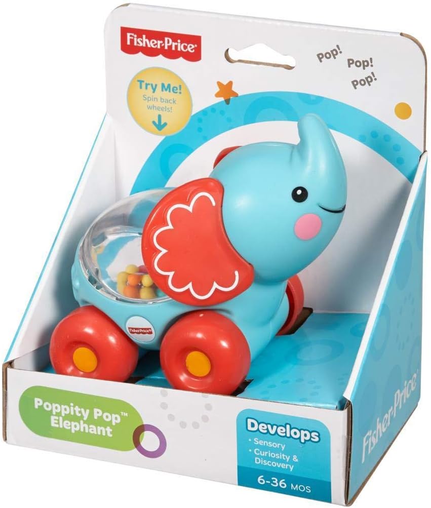 Uzbudljiva akcija, zabavni zvukovi i sjajni odsjaji potiču dijete da puzi i gura slona uvijek iznova. Fisher-Price® Poppity Pop™ slon savršene je veličine za hvatanje i držanje malim rukama.