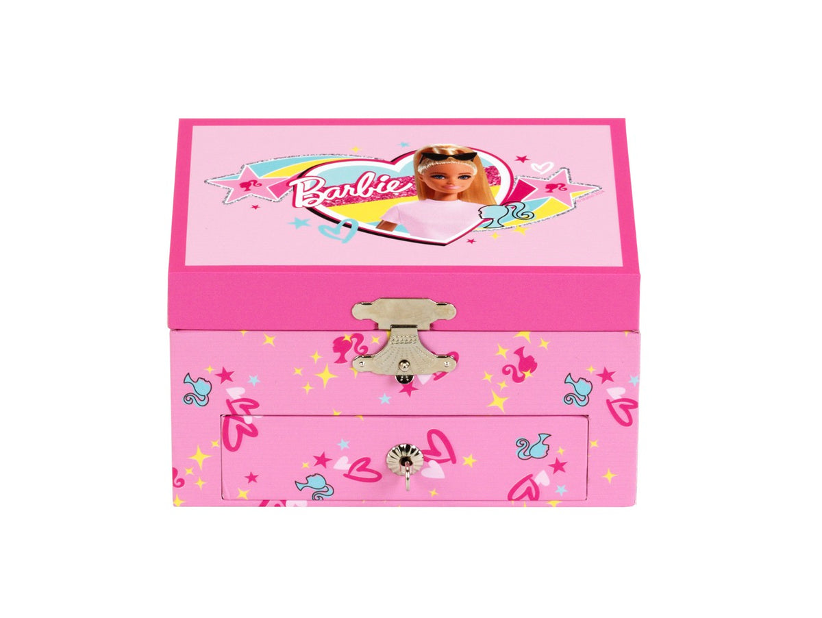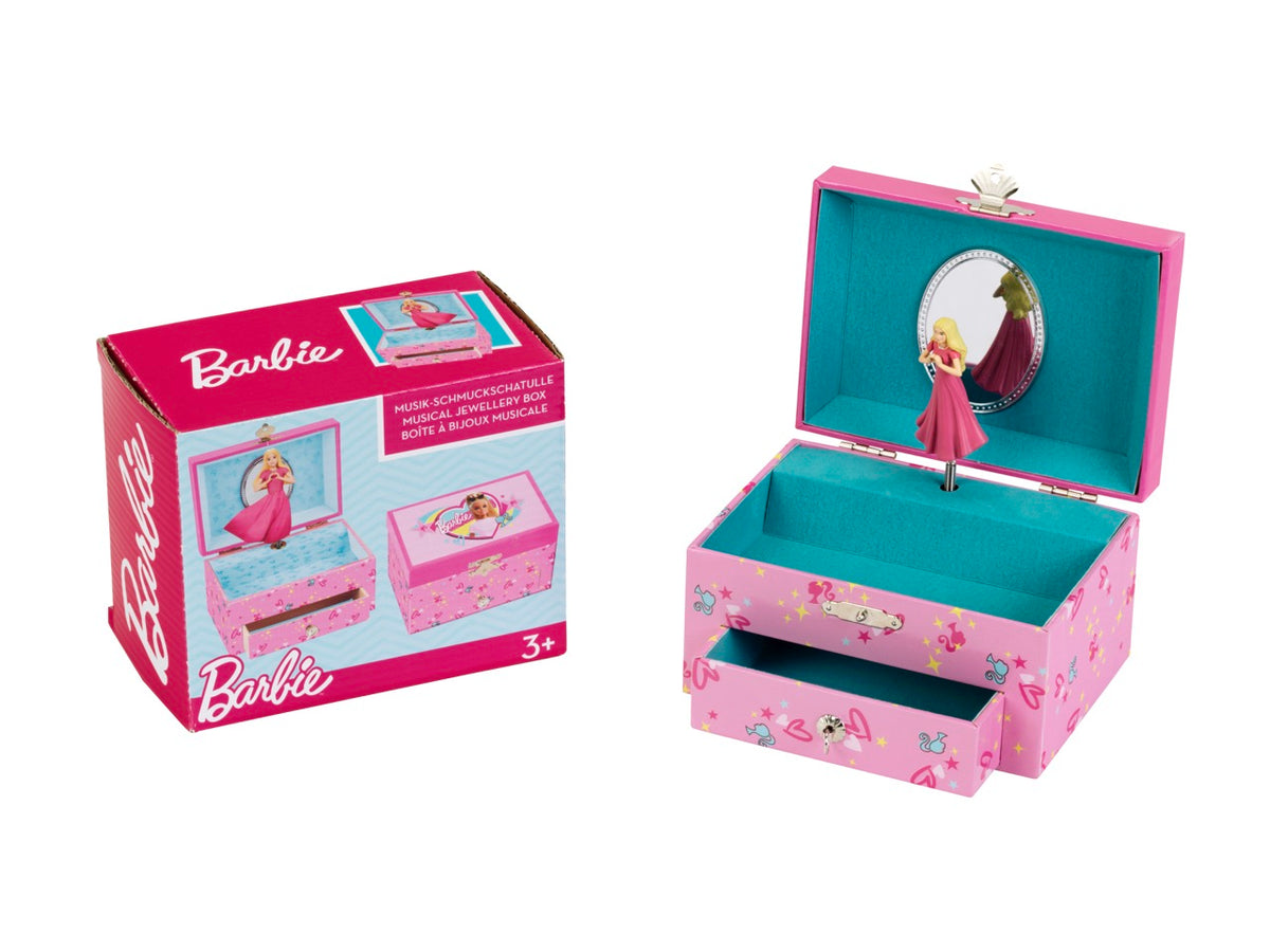 Ljubitelji Barbie obožavat će ovu kutiju za nakit na prvi pogled! Podignite lijepi poklopac i graciozna mala balerina Barbie elegantno se vrti u krug i pleše uz čarobnu melodiju. Sve što mladi obožavatelji lutaka trebaju učiniti je naviti mehaničku glazbenu kutiju sa zlatnim ključem. Pred njima se otvara svijet snova koji ima i mnogo praktičnih aspekata. Barbie nakit, cipele, ogledalce, četke za kosu i češljevi - sve to i više, Barbie mame i tate mogu spremiti u kutiju. I svaki put kad iz njega nešto izvade, nježna glazba odvede ih u maštovit, prekrasan svijet Barbie.