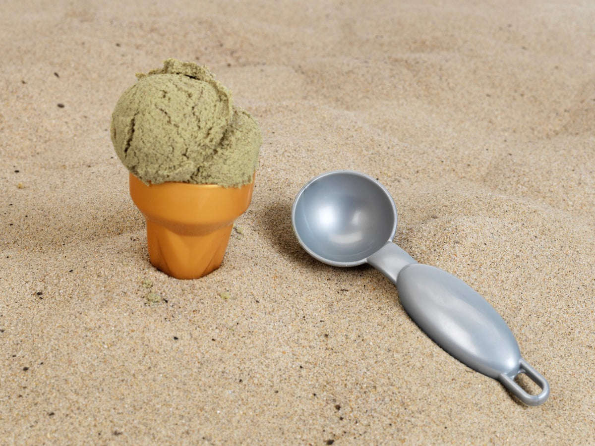 Šareni pješčani set za sve koji vole sladoled i ljeto! S kreacijom od leda, žlicom za sladoled i žlicom za sladoled mališani mogu stvarati maštovite kreacije od pijeska i vode. Najbolje je prvo pomiješati pijesak i vodu u čvrstu kašu. Tada mladi ljubitelji sladoleda samo oblikuju kuglice praktičnom žlicom za sladoled i pritisnu ih na šarene vafle. Naravno, mogu se ukrasiti i kamenčićima, lišćem ili granama. Baš kao što djeca vole. No budući da mladi sladoledari žele poslužiti svoje poslastice, zasigurno će se dobro zabaviti!