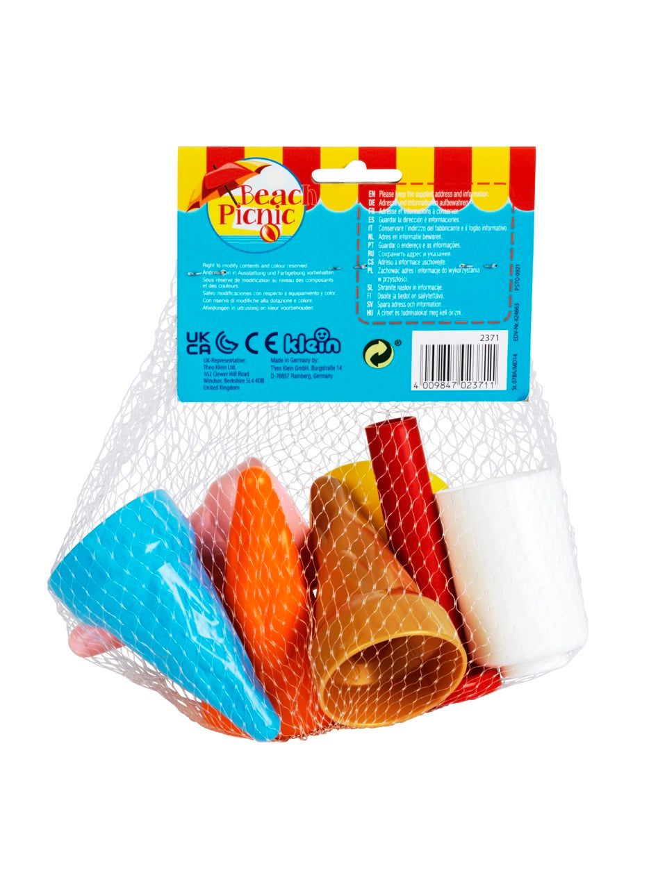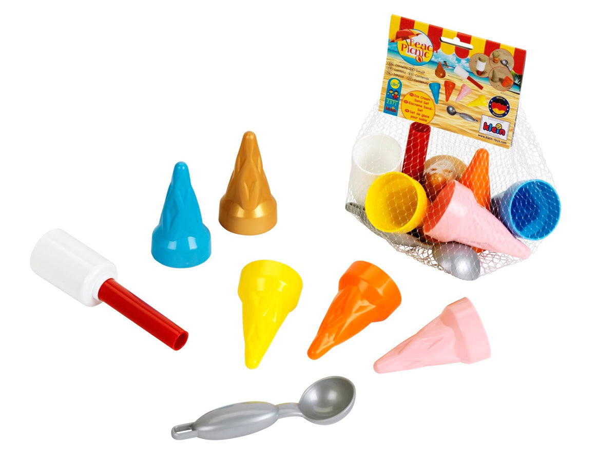 Set za sladoledni pijesak sadrži pet šarenih sladolednih vafla, kuglicu za sladoled i kuglicu za sladoled.