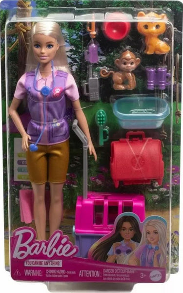 Animal Rescue Barbie može upućivati pozive u džunglu sa svojom liječničkom torbom koja se otvara i sadrži njezine potrepštine, poput stetoskopa u obliku srca, bočice za hranjenje i štrcaljke!