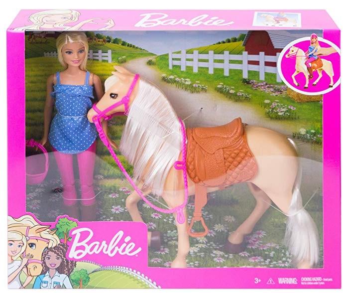 Barbie® lutka spremna je pomoći mašti da ujaše u igru konja! Dolazi s prekrasnim konjem, zajedno sa sedlom i uzdom, tako da ova dva najbolja prijatelja mogu zajedno ići u avanture.
