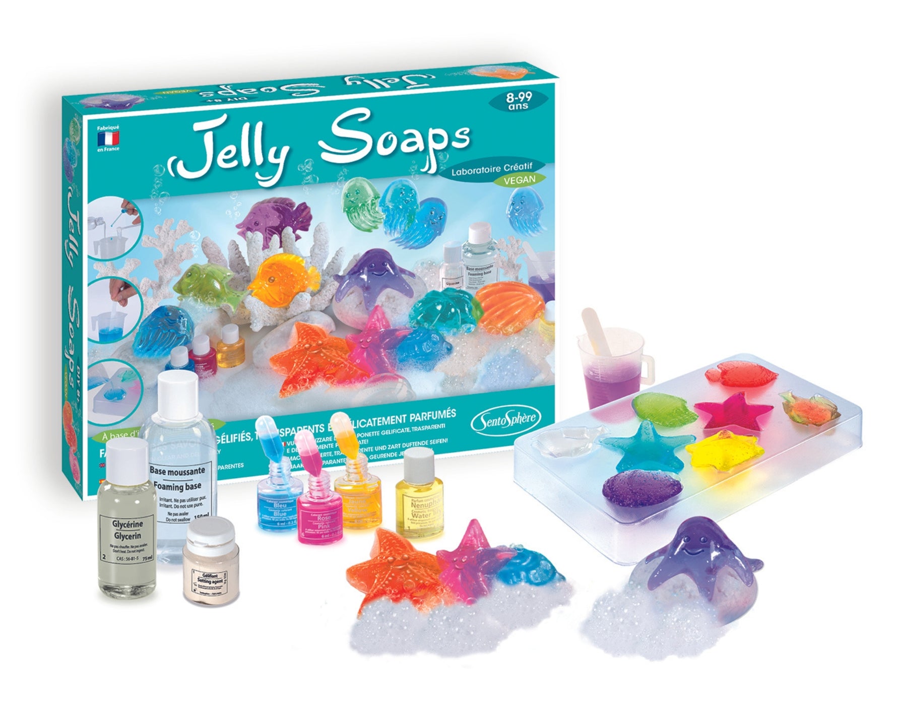 S ovim setom možeš napraviti do 12 slatkih i šarenih hobotnica, meduza, riba i morskih zvijezda koje će kupanje pretvoriti u pravu zabavu! Priložena je i kutija za jednostavno nošenje žele sapuna u pokretu.