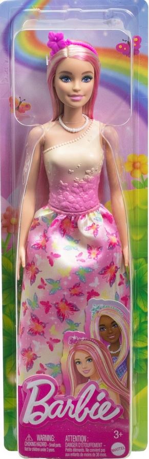Barbie lutka. Ova prekrasna, šarena lutka je kao iz bajke. Ima dugu, lepršavu kosu koja se može raščešljati, top s ukrasnim cvjetovima, suknju s uzorkom i cipele na visoku petu. Na glavi nosi prekrasnu krunu s cvijetom. Prava princeza.