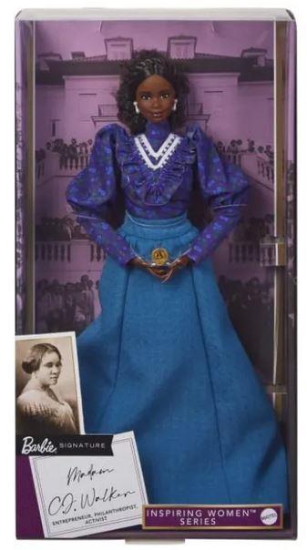Serija Barbie Inspiring Women slavi nevjerojatne heroine svog vremena: hrabre žene koje su riskirale, promijenile pravila i utrle put generacijama djevojaka da sanjaju veće nego ikad prije. Madam CJ Walker, rođena kao Sarah Breedlove 1867. na plantaži pamuka u Delti, Louisiana, bila je kći roditelja koji su bili bivši robovi i postali farmeri zakupci. Walker je postao uspješan poduzetnik i prvi dokumentirani milijunaš koji je sam stekao u Sjedinjenim Državama. Barbie odaje počast svojoj nepokolebljivoj odlučnosti kolekcionarskom lutkom napravljenom po njezinom uzoru. Lutka također uključuje dodatak 'Madam CJ Walker's Wonderful Hair Grower'. Barbie lutka Madam CJ Walker bit će prekrasan dodatak svakoj kolekciji. Stalak za lutke i potvrda o autentičnosti uključeni. Lutka ne može samostalno stajati.