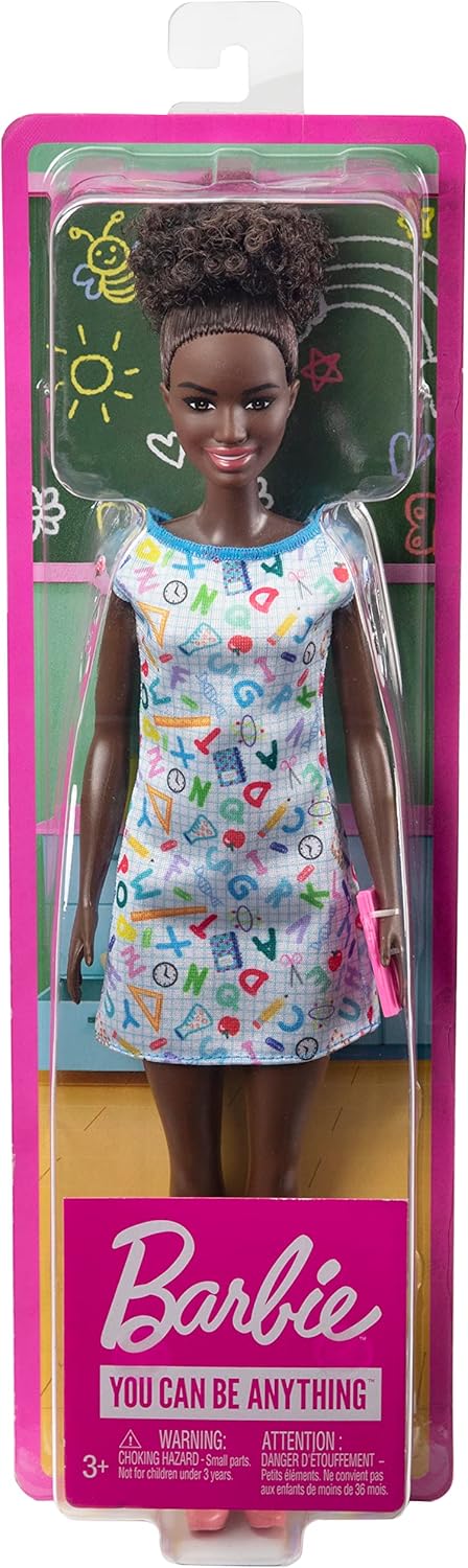 Istražite svijet zabavnog učenja s učiteljicom Barbie! Ovaj set uključuje Barbie učiteljicu odjevenu u abecednu haljinu i ružičaste cipele, sa slatkom frizurom u punđu. Ona je spremna da vas podučava!