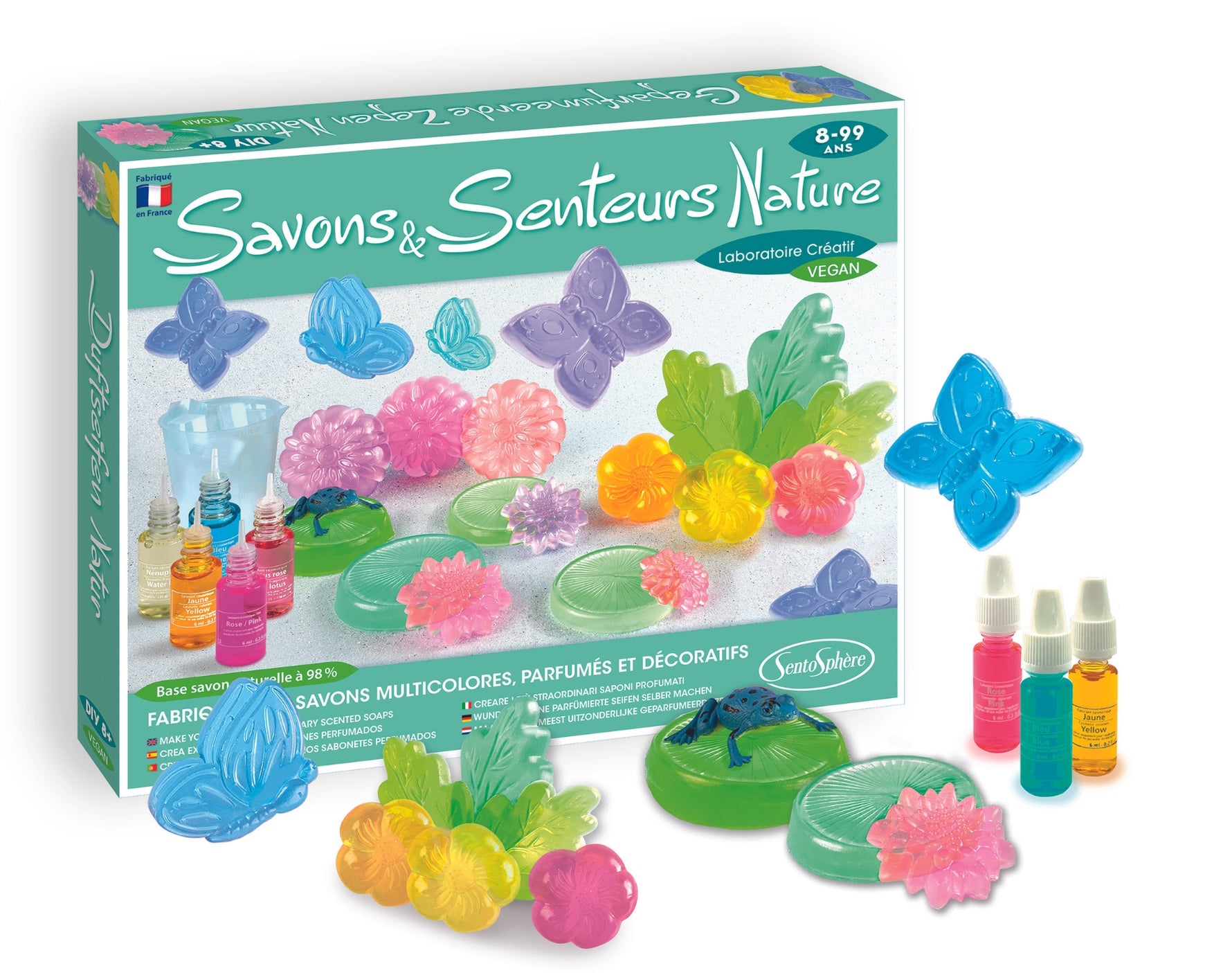 Ovaj set za izradu sapuna pomoći će vam da stvorite prekrasne sapune s prirodnim motivima, raznobojnim i veganskim: lopočima, lotosovim cvjetovima, leptirima ili čak žabama! Vrlo jednostavan za korištenje, jer se glicerinska baza sapuna topi u mikrovalnoj pećnici ili u vodenoj kupelji i može se mirisati i bojati prema dozama navedenim na uputama. Ispitani pod liječničkim nadzorom, mogu se koristiti i na najosjetljivijoj koži bez rizika. Dostupni su zamjenski setovi sapuna kako biste mogli nastaviti s ovom aktivnošću poštujući okoliš.