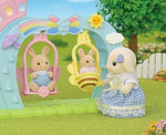 Dva užeta imaju izgled leptira i pčele. Tu je i mali cvjetni lift koji omogućava bebama da se penju i spuštaju. Kad su na vrhu, figure se ponovno spuštaju niz tobogan. Mala rupa omogućuje bebama da vide druge bebe. Set uključuje bebu Islu, mliječnog zečića. Obitelji Sylvanian žive u idiličnom svijetu Sylvanije i potiču tradicionalni obiteljski život s kućama, namještajem, dodacima i nezaboravnim likovima, a sve s nevjerojatnim detaljima koje ćete voljeti.