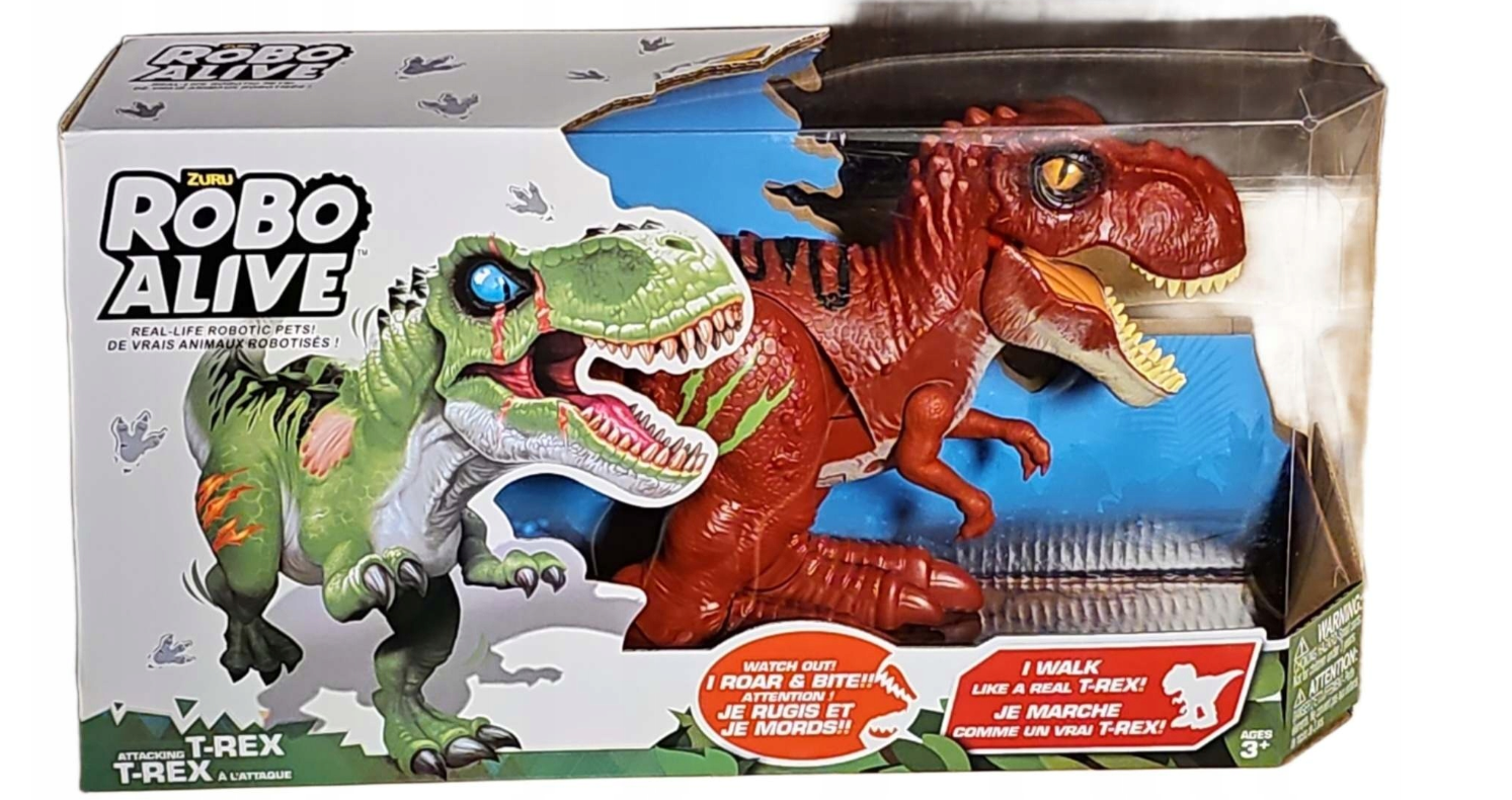 Upozorenje! Ovaj dinosaur je stvarno živ! ZURU -ov novi Robo Alive Attacking T-Rex hoda i trči pokretima pravih dinosaura. Grize, riče i ima vrlo realistične oči! Možete otkriti novi dino-znoj koji svijetli u mraku unutar dino jajeta! Pazi, ovo nije običan kućni ljubimac i čuvaj se iznenađenja - dinosaur sa znojem! On je više nego živ – on je Robo Alive !